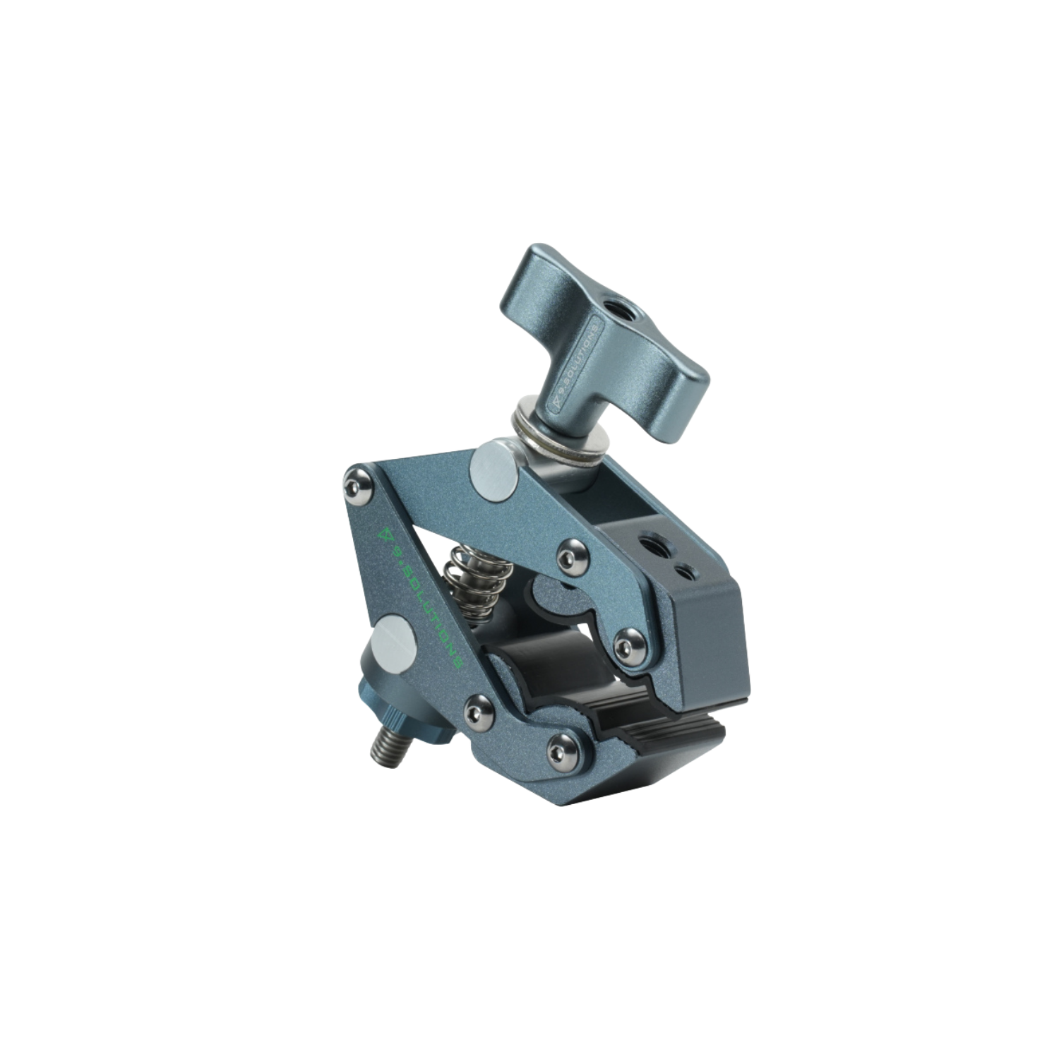 The Savior Clamp is tapped with one 1/4”-20 and one 3/8”-16 female threaded hole on each of the jaws. This makes it possible to mount multiple pieces of equipment on one clamp.